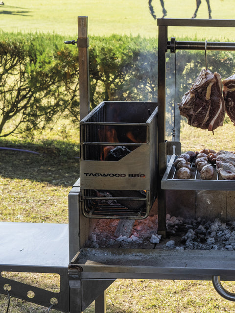 Tagwood BBQ Table Top Warming Brazier | Stainless steel and Acacia wood | BBQ07SS--