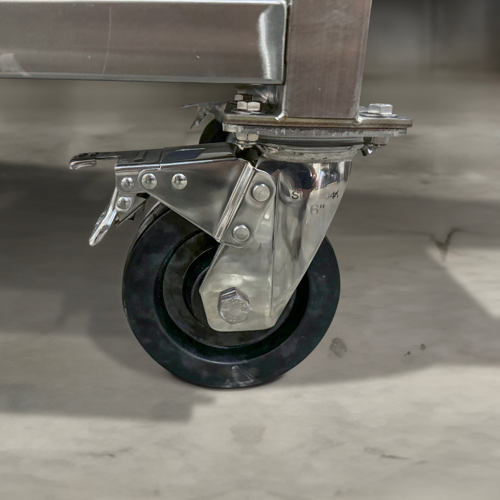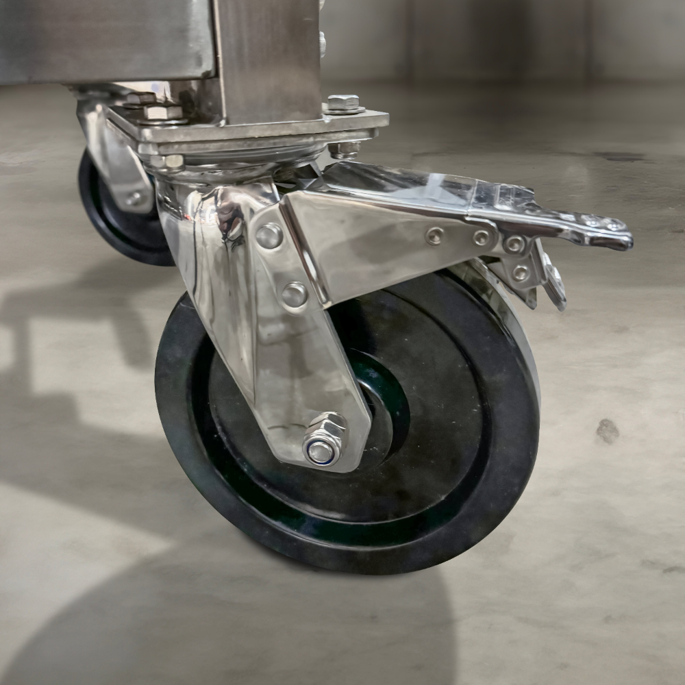 All stainless steel (SS304) with bakelite wheel and built-in brake