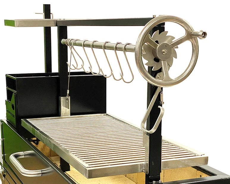 Height adjustable grates: This feature gives you the possibility to adjust the height of the grates to control the cooking temperature. Use the wheel to move the main grates up or down depending on what you need (closer to the coals = more heat to sear | away from coal = less heat for slow cooking). It is a feature that you will find in many South American barbecues because it allows you to really master the grill.